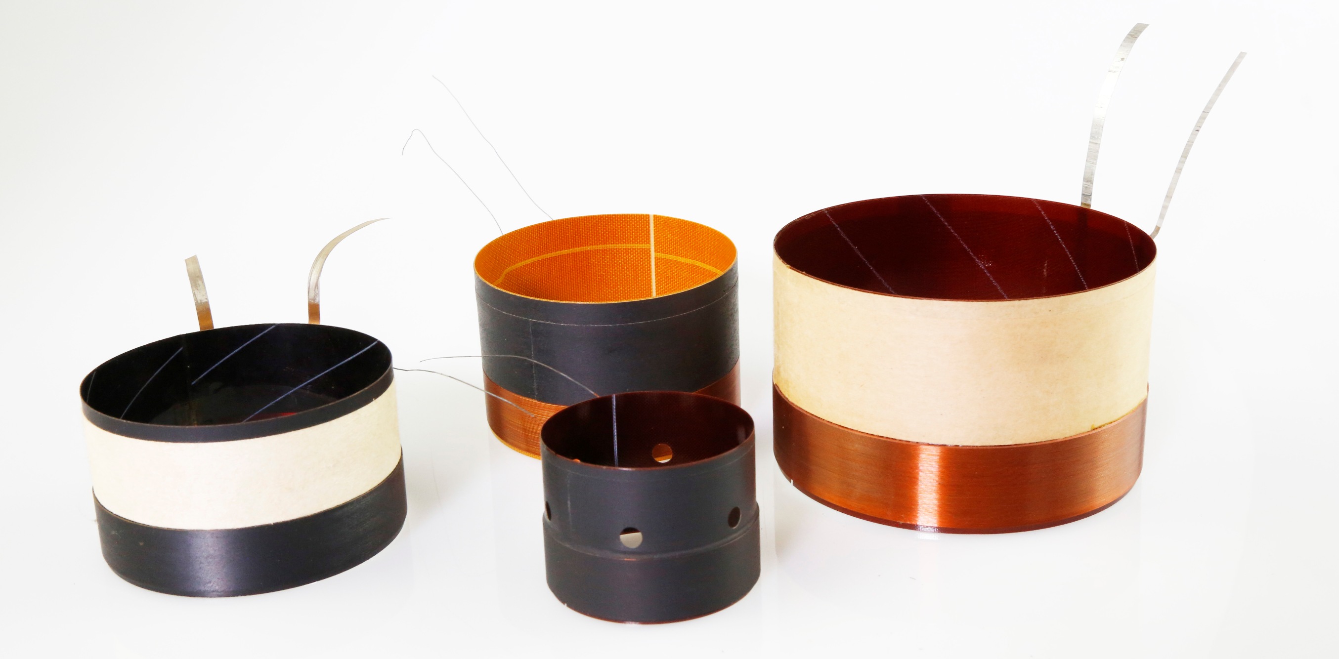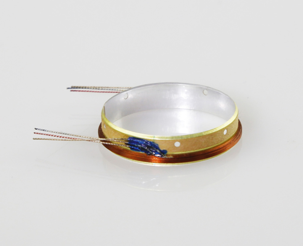 喇叭音圈根據低、中、高音單元的需要而有不同,高音喇叭音圈用十分細的線繞成,包括銅線和鋁線兩種,鋁線質重較輕,可獲得更佳的瞬態響應,但在承載力和耐用性方面不及銅線,中音和低音喇叭多用銅線繞音圈,而且銅線較粗能承受大功率